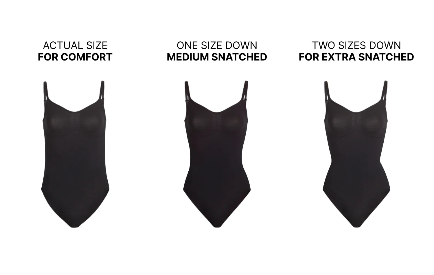 We recommend sizing down for a snatched, sculpted fit. The fabric is ultra-stretchy and designed to hug your body. If you're between sizes, choose the smaller option.